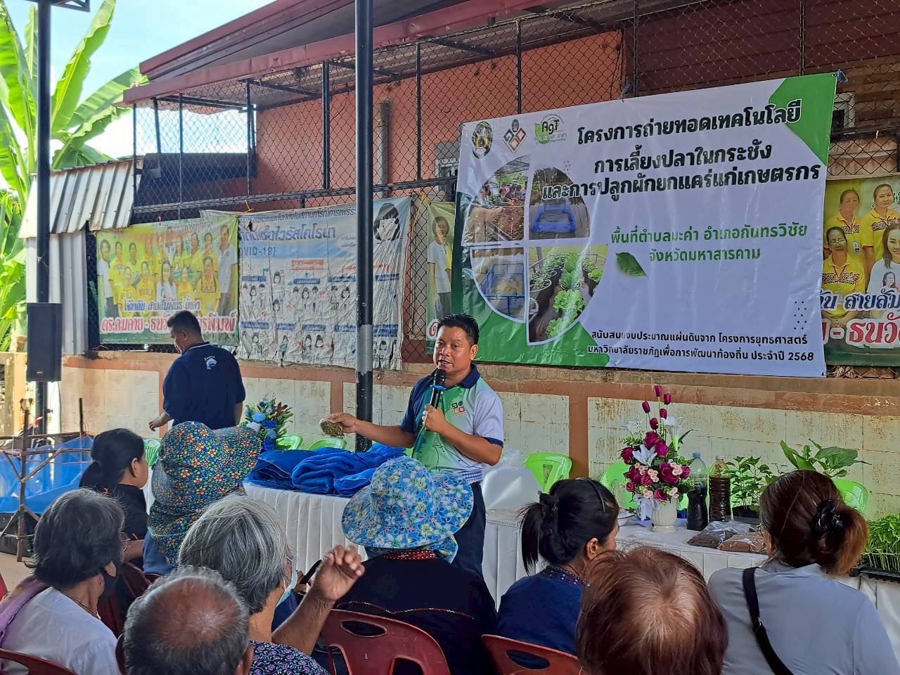 Technology Transfer on Cage Fish Farming and Raised-Bed Vegetable Cultivation for Farmers in Makha Subdistrict, Kantharawichai District, Maha Sarakham Province