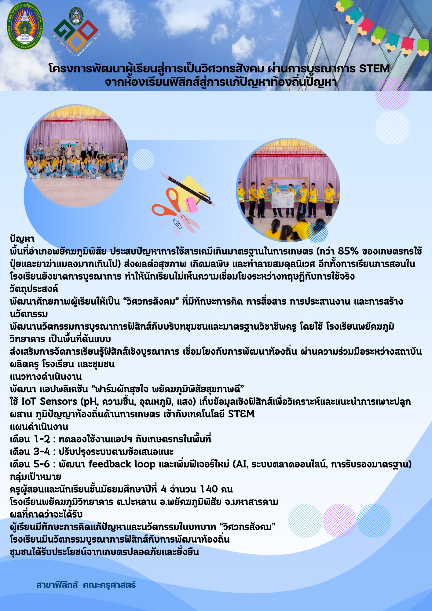 พัฒนานวัตกรรมการบูรณาการฟิสิกส์กับบริบทชุมชนและมาตรฐานวิชาชีพครู โดยใช้ โรงเรียนพยัคฆภูมิวิทยาคาร เป็นพื้นที่ต้นแบบ