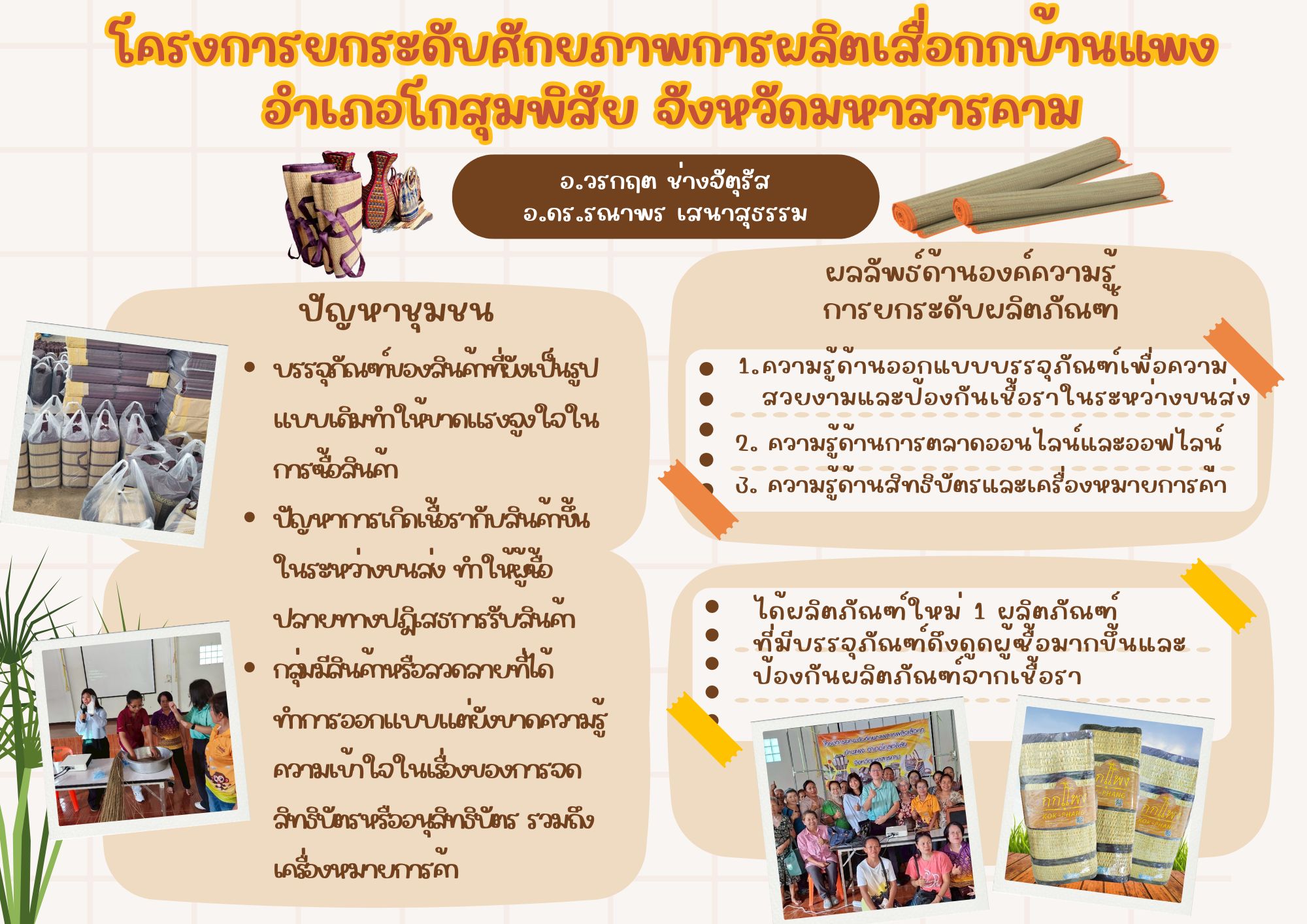 โครงการยกระดับศักยภาพการผลิตเสือกก บ้านแพง อำเภอโกสุม จังหวัดมหาสารคาม