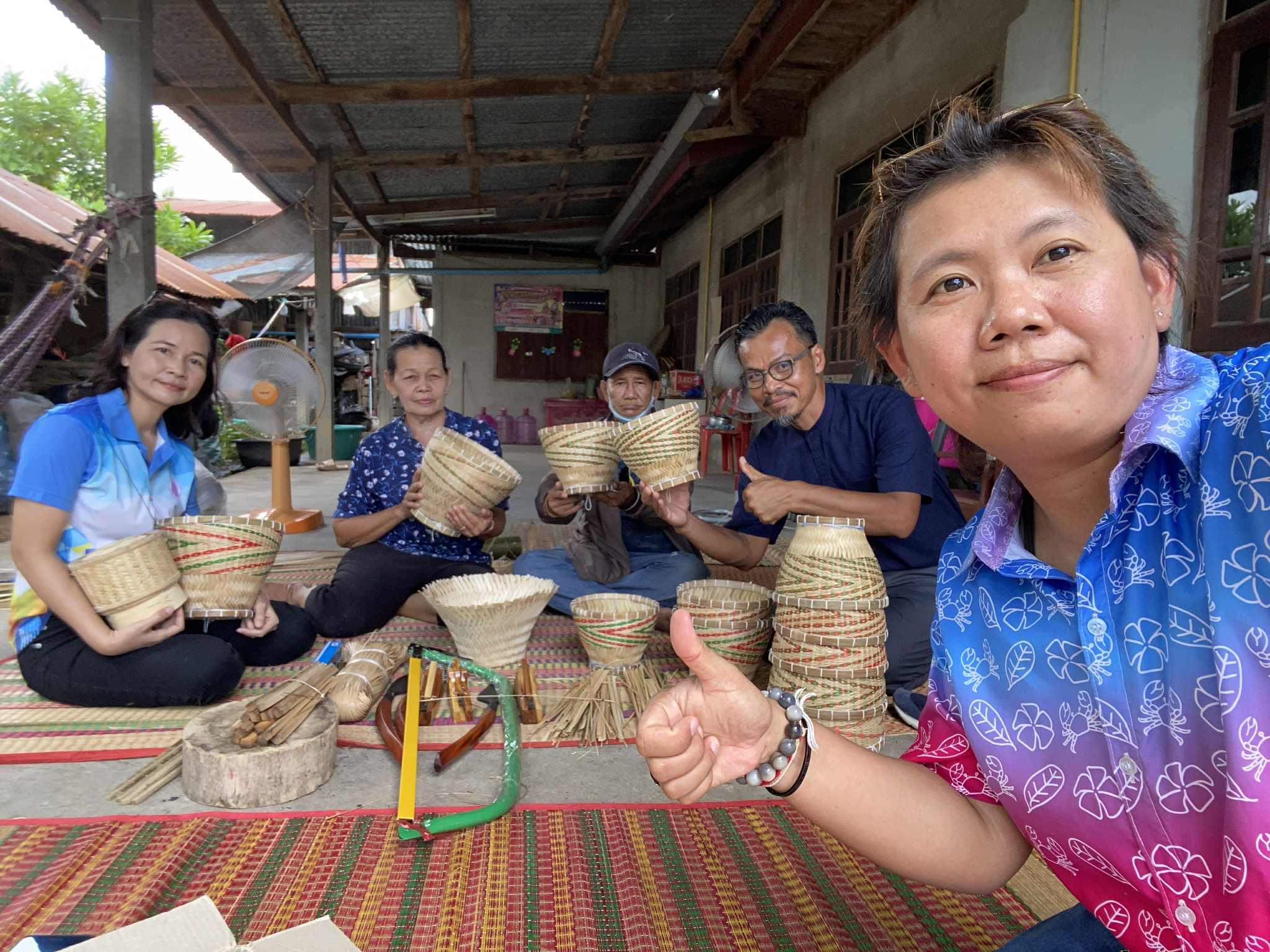 -ถ่ายทอดองค์ความรู้ด้านเทคโนโลยีการผลิต เช่น การเคลือบกันชื้น การอบสีธรรมชาติ หรือการใช้เครื่องมือช่วยในการจักสาน