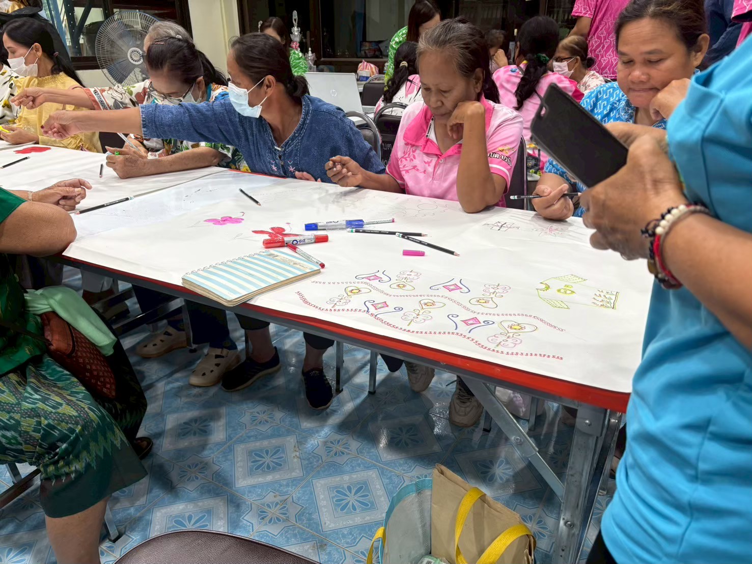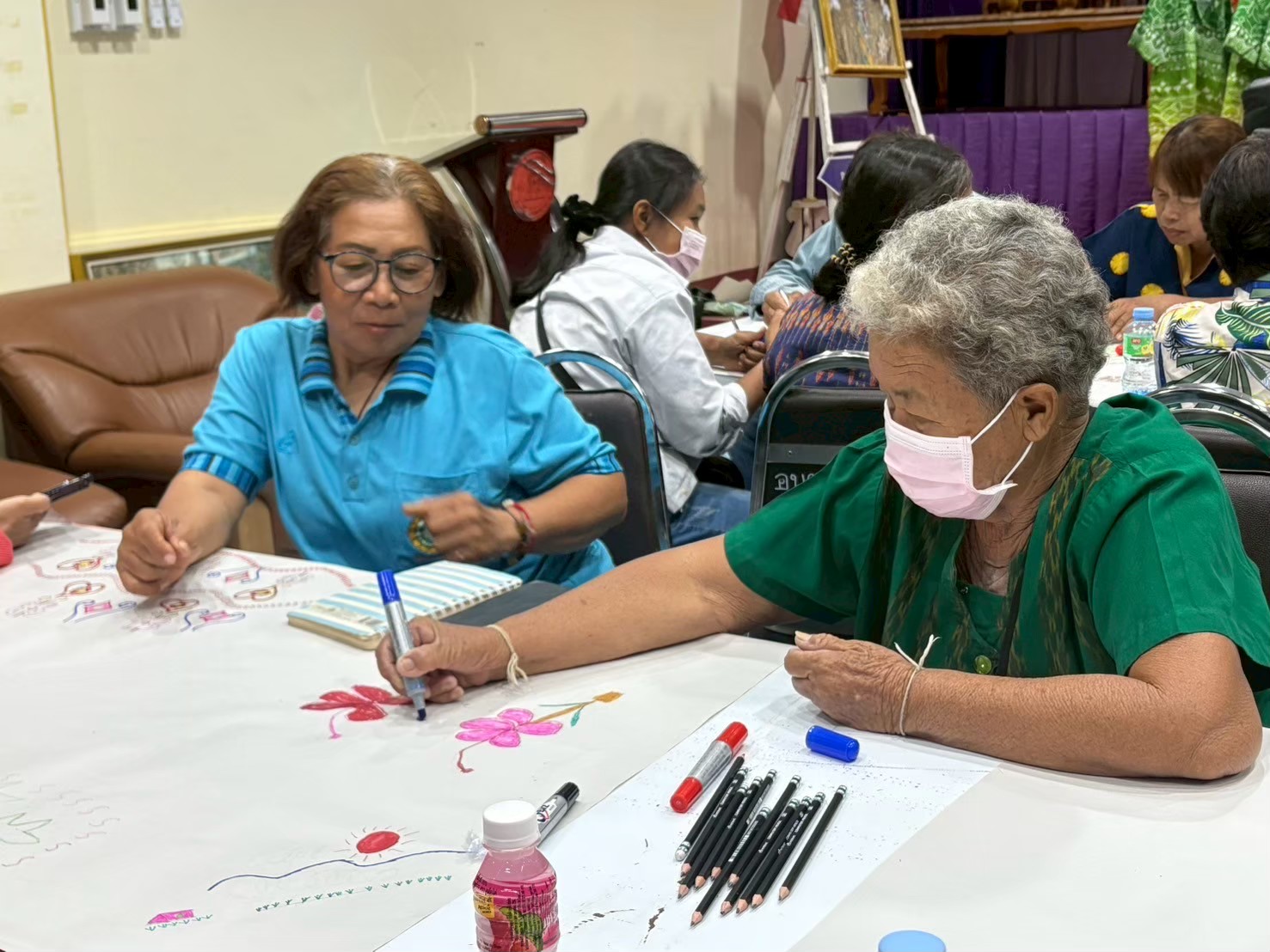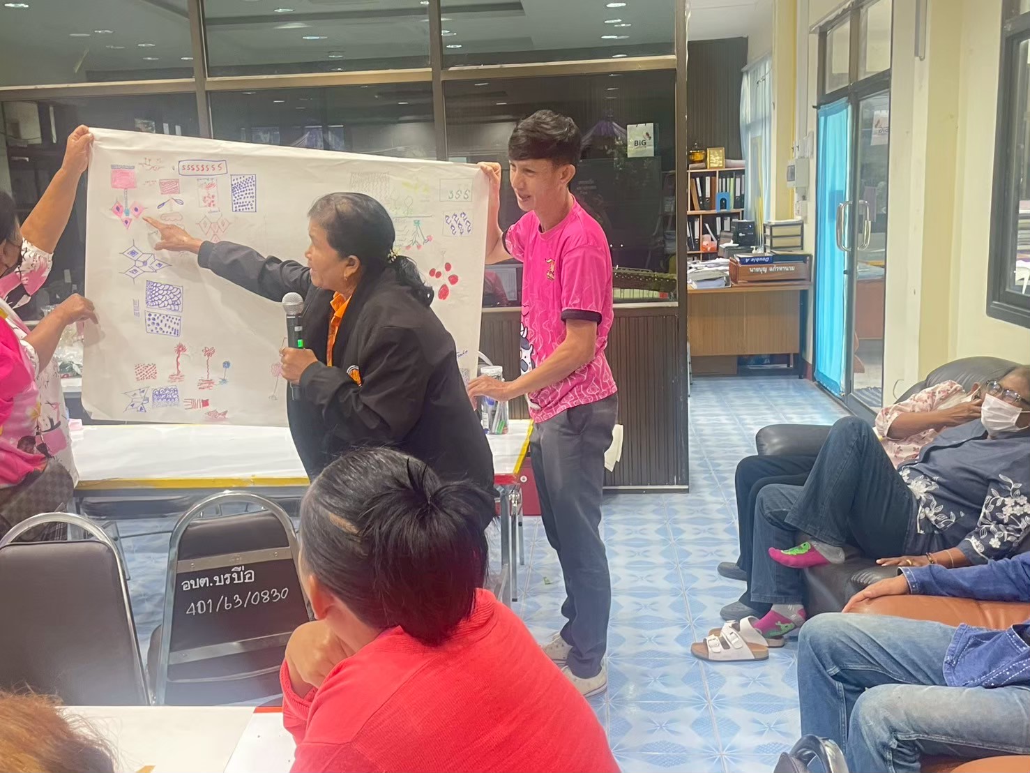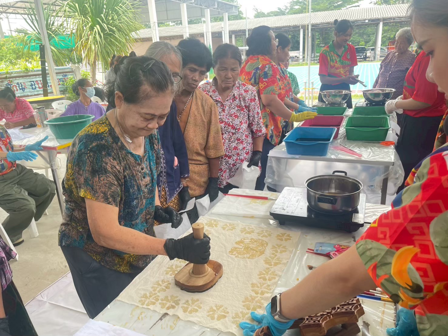 คณะผู้ดำเนินโครงการจัดอบรม โดยวิทยากร ผศ.ดร.จารุวรรณ เอกสระพัง และ ผศ.ดร.ไอยลัดดา โอ่งกลาง มุ่งเน้นการสร้างความเข้าใจในแนวคิดการเป็นผู้ประกอบการสมัยใหม่ (Entrepreneurship) การกำหนดราคา การคำนวณต้นทุน และการทำบัญชีรายรับรายจ่ายอย่างง่าย นอกจากนี้ ยังมีการฝึกปฏิบัติการสร้างร้านค้าออนไลน์เบื้องต้นบนแพลตฟอร์มต่างๆ เช่น Facebook, Instagram และการถ่ายภาพสินค้าให้มีความน่าสนใจ นอกจากนี้คณะผู้ดำเนินโครงได้จัดทำกิจกรรมการพิมพ์ลายผ้าให้แก่ผู้เข้าอบรมเพิ่มเติม