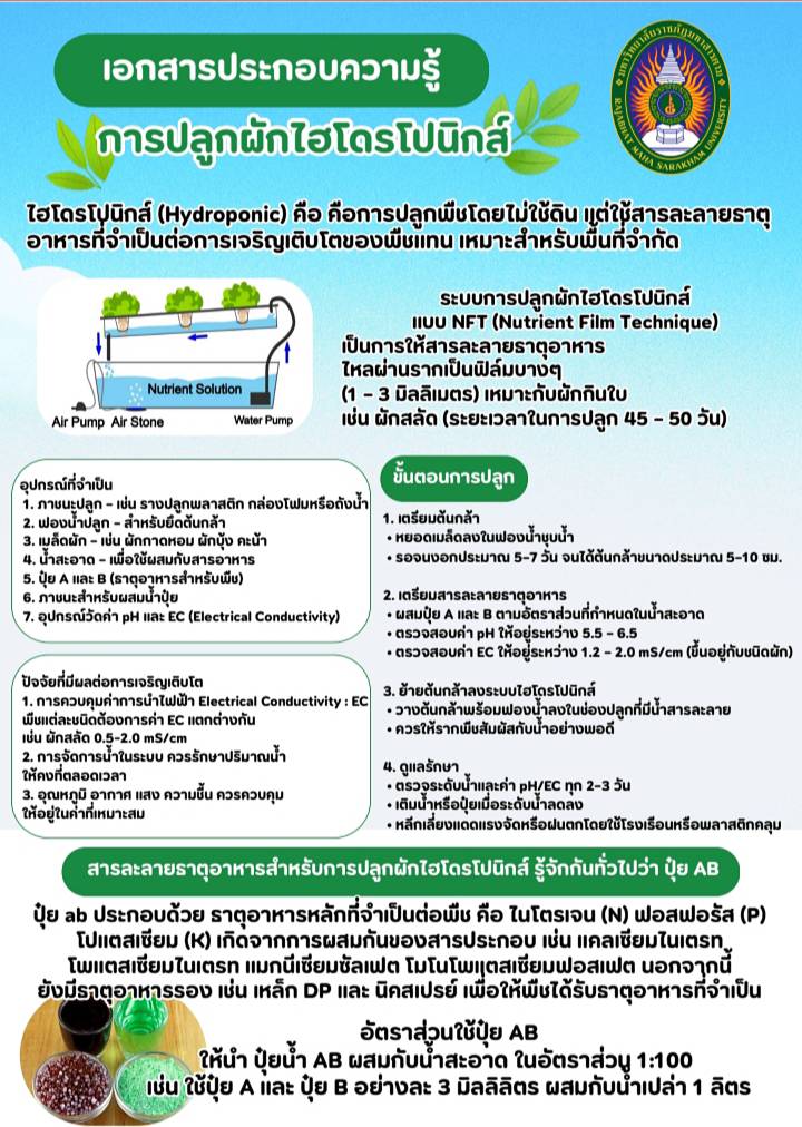 1.2) พัฒนาชุดรูปแบบการเรียนรู้ที่หลากหลาย นอกจากการปลูกผักไฮโดรโปนิกส์ อาจพิจารณาเพิ่มหัวข้อการเกษตรสมัยใหม่ที่น่าสนใจอื่นๆ เช่น การปลูกพืชแบบแนวตั้ง หรือระบบสมาร์ทฟาร์มขนาดเล็ก