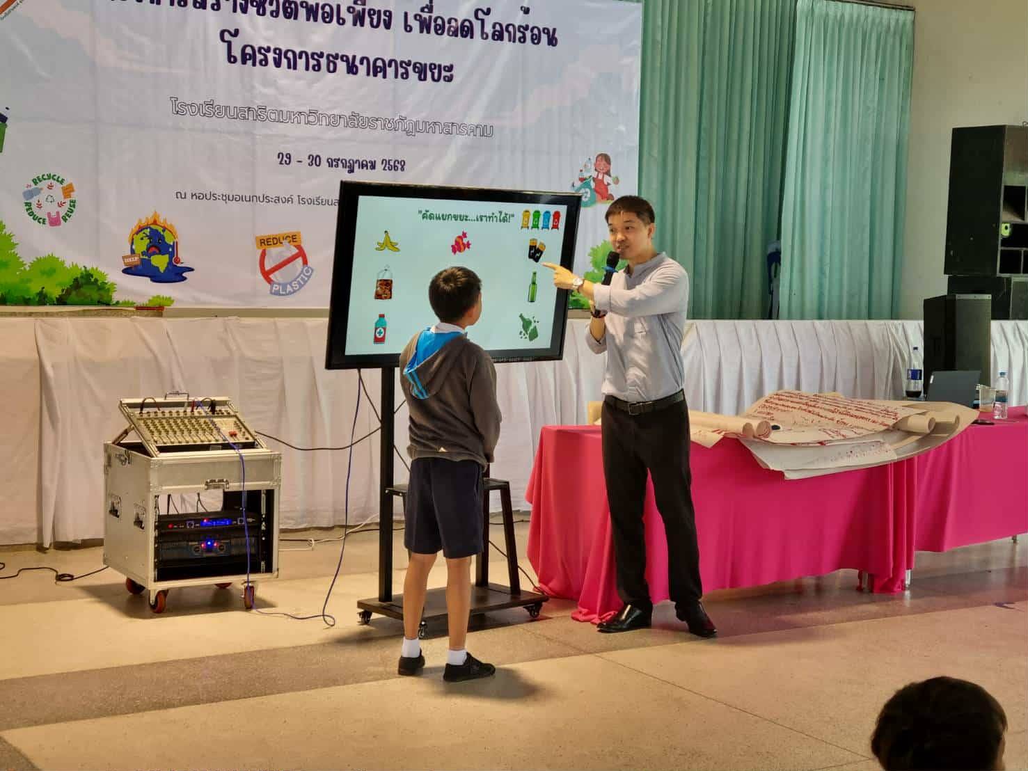 The university should establish a network “Community Waste Bank”, with Rajabhat Maha Sarakham University and its Demonstration School serving as the central hub